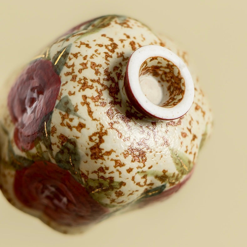 The red pottery is finished with a caramel-textured glaze that mimics volcanic stone, and its interior employs the incense ash body glaze-spraying technique. It undergoes 28 production processes including hand-painting and gold-filling craftsmanship, as well as multiple firing procedures. The overall color tone of the pattern is simple and elegant while retaining a sense of profoundness and weight.Note: Each piece is purely hand-painted, so no two patterns are exactly the same.